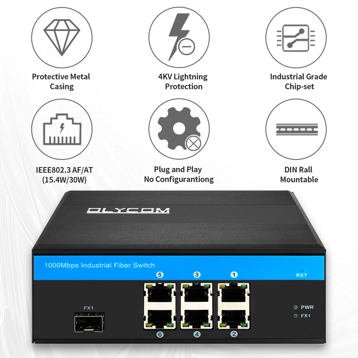 6 θύρες Gigabyte βιομηχανική PoE μη διαχειριζόμενος διακόπτης