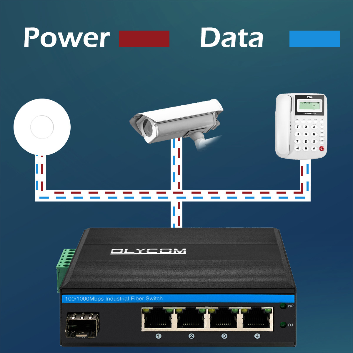 5 θύρες Compact DIN Rail Gigabit PoE Fiber Switch